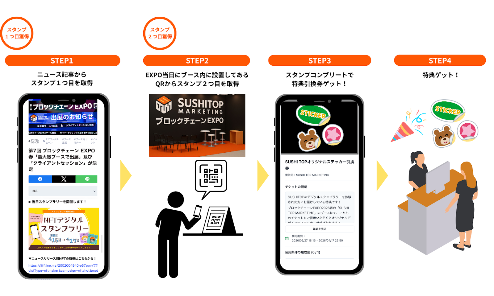 3️⃣ スタンプ達成で特典引換券をGET!