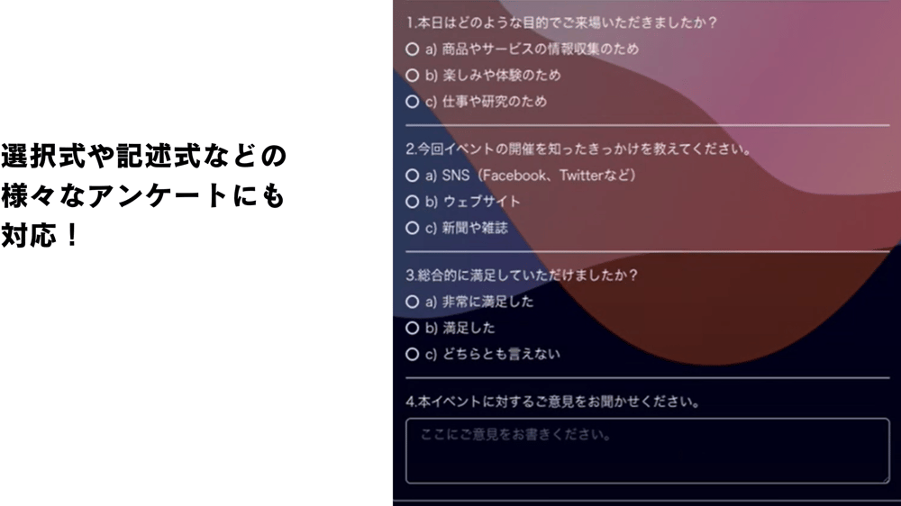 NFT受け取り導線の中にアンケートフォームを設置。アンケートに回答することでNFTを受け取ることができる仕組みのため、回答率の向上及び顧客データの収集に役立ちます。