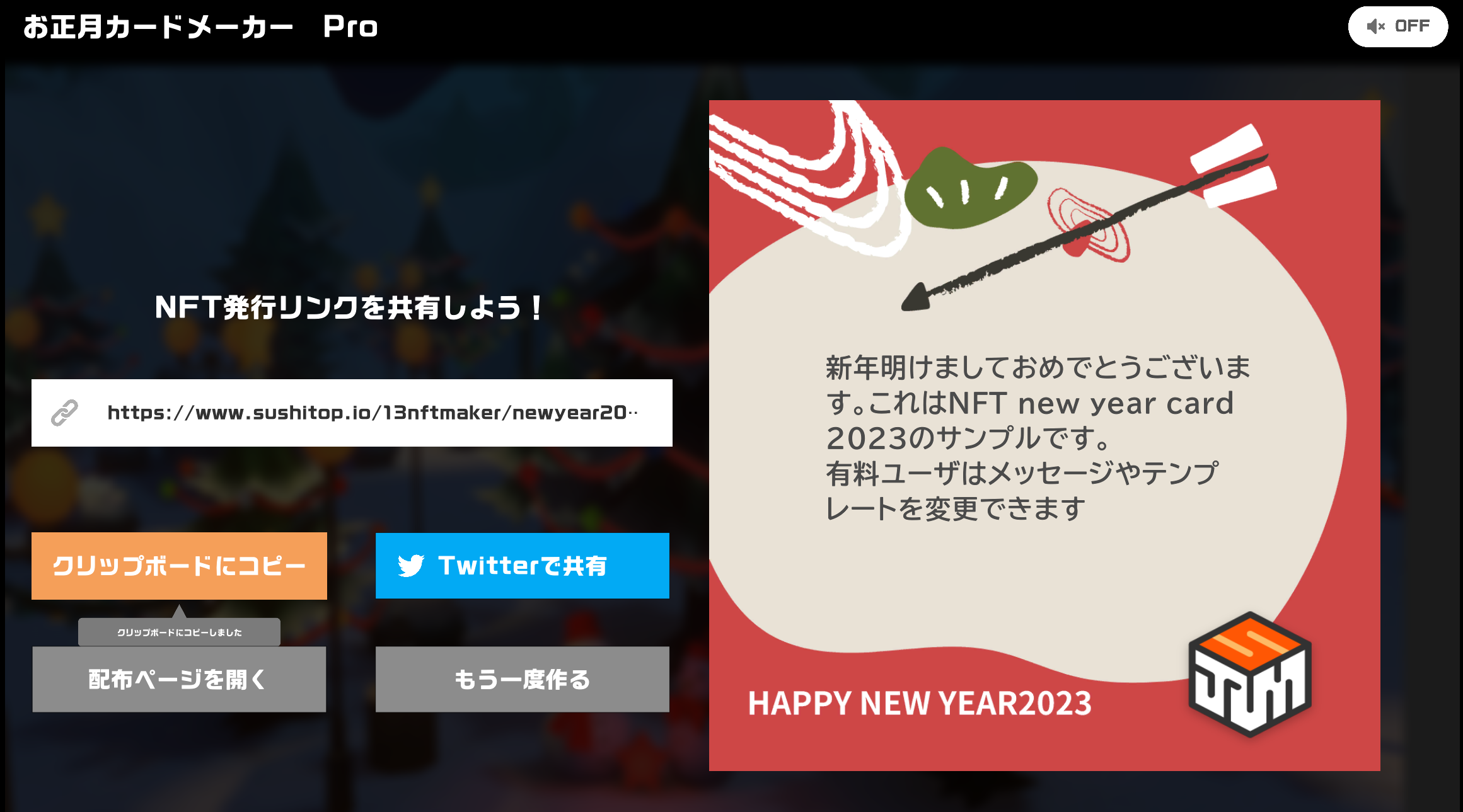 - 作成したお正月NFTがmintできるサイトのURLを受け取る