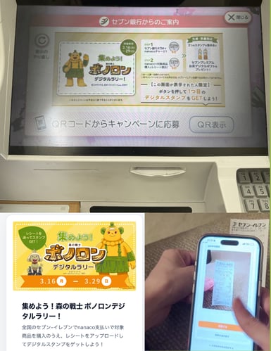 ATMにおける行動データと店頭の購買体験をAI-OCRとNFTで連携させ、点在していた顧客接点を横断的に捉えるための次世代販促モデルのPoCとして、販促キャンペーン「集めよう!森の戦士ボノロンデジタルラリー!」を2026年3月16日(月)より実施しました。具体的にはセブン銀行ATMでの電子マネー「nanaco」のチャージと、セブン-イレブンでのnanacoを使った対象商品のお買い物で、それぞれ限定ボノロンのNFTスタンプを取得することができます。2種類のボノロンNFTスタンプを集めた方には、先着でデジタルギフト券を進呈しました。